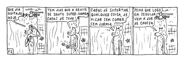 Fabio Zimbres, também conhecido como FZ, nasceu em São Paulo em 1960 e mora em Porto Alegre há mais de 20 anos. Estudou arquitetura, se formou em artes plásticas e é uma referência no universo dos quadrinhos e das publicações independentes.