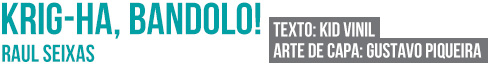 | “Ele tem praticamente 29 minutos, que pode parecer pouco, mas é tempo mais do que suficiente para Raul Seixas conseguir provar seu talento e fincar o seu nome na história da música brasileira. O título, Krig-ha, Bandolo!, foi tirado de um gibi do Tarzan – era o grito de guerra do personagem principal, que significa “Cuidado, aí vem o inimigo!”. Na capa, Raul fez questão de posar como um “anti-star”. Sem camisa, exibia seu corpo magro, porte físico apenas com um medalhão no peito e as mãos levantadas. A cara com uma espécie de sorriso cínico completava a ousadia, um contraste com os artistas da época, que faziam capas de disco superproduzidas e sempre bem tralhados.” |