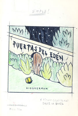 Neste primeiro rascunho da capa, a ideia era colocar o título como grafite na parede e que a paleta de cores não fosse monocromática. Na época ele já estava pensando na dedicatória do livro, por isso aparece “Para Teo” no canto da página.