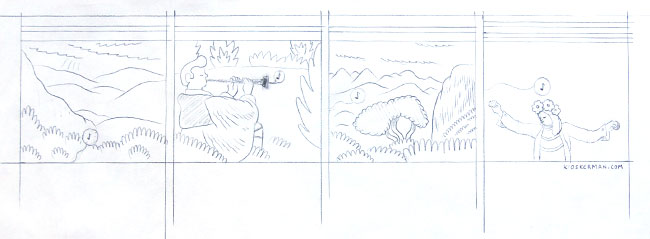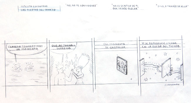 Rascunho da tira da página 5, que abre o livro Portas do Éden.
